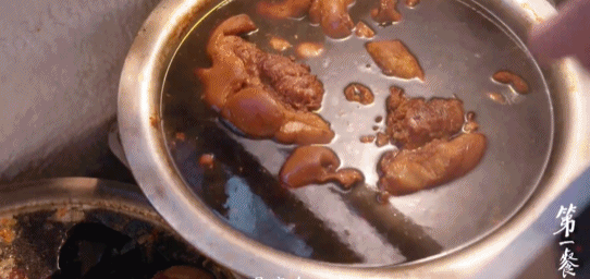 先前簡單粗暴的“分頭行動”,讓豬頭肉墊定了肉酥骨爛的美味基礎。