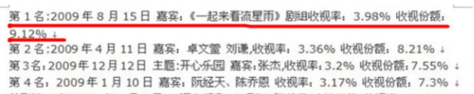 《一起來看流星雨》爆紅,劇組演員錄製的那期快本,讓節目收視率爆表。