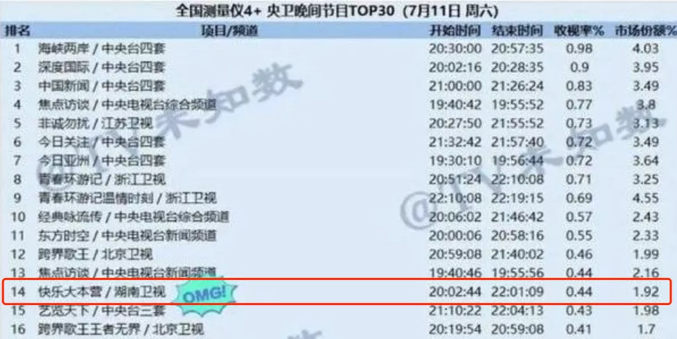 收視率3.98%,收視份額9.12%,到現在依然在快本收視率的榜首。