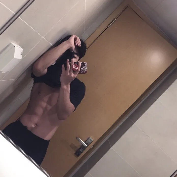 毫無保留的八塊腹肌,完美身材一覽無遺。(武術選手都這麼大方的嗎?i了