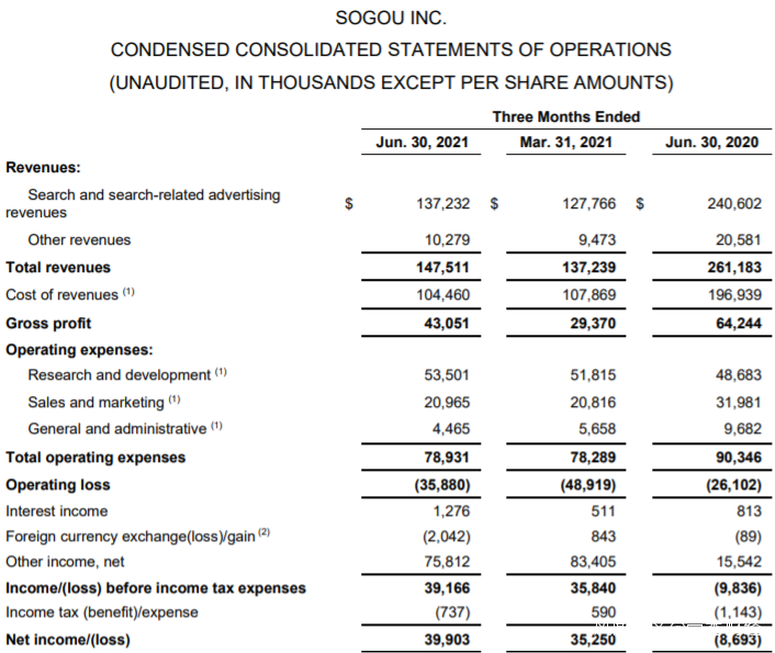 不過,搜狗退市前最後一份財報顯示,營收同比下降了44%,只有1.475億美元,淨利潤3990萬美元。
