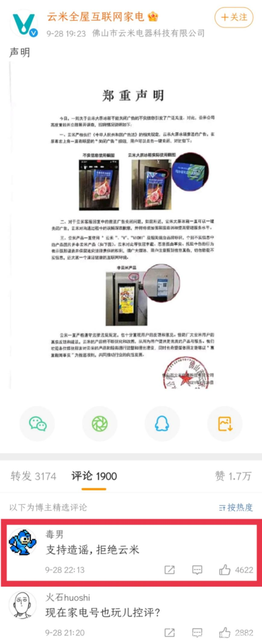 因“強推廣告”遭全網吐槽的雲米冰箱,又因強硬聲明再陷輿論風暴!堪稱“火上澆油”的典型代表!……雲米急了?