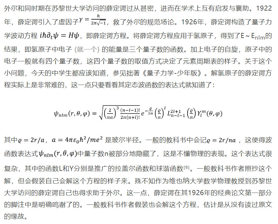 如果將1925年底薛定諤構思波動方程算作新量子物理的起點,可以説外爾從一開始就參與了量子力學的創立。要確立薛定諤方程
