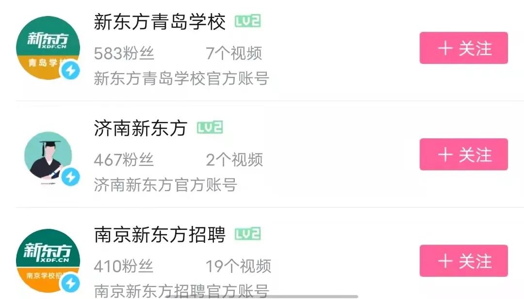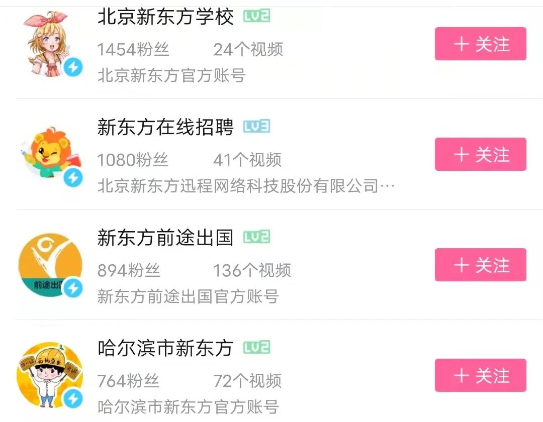 另一方面,新東方多個城市的分校在B站、微信視頻號等平台進行直播,但大多數賬號僅有幾百個粉絲,觀眾和播放量寥寥無幾。