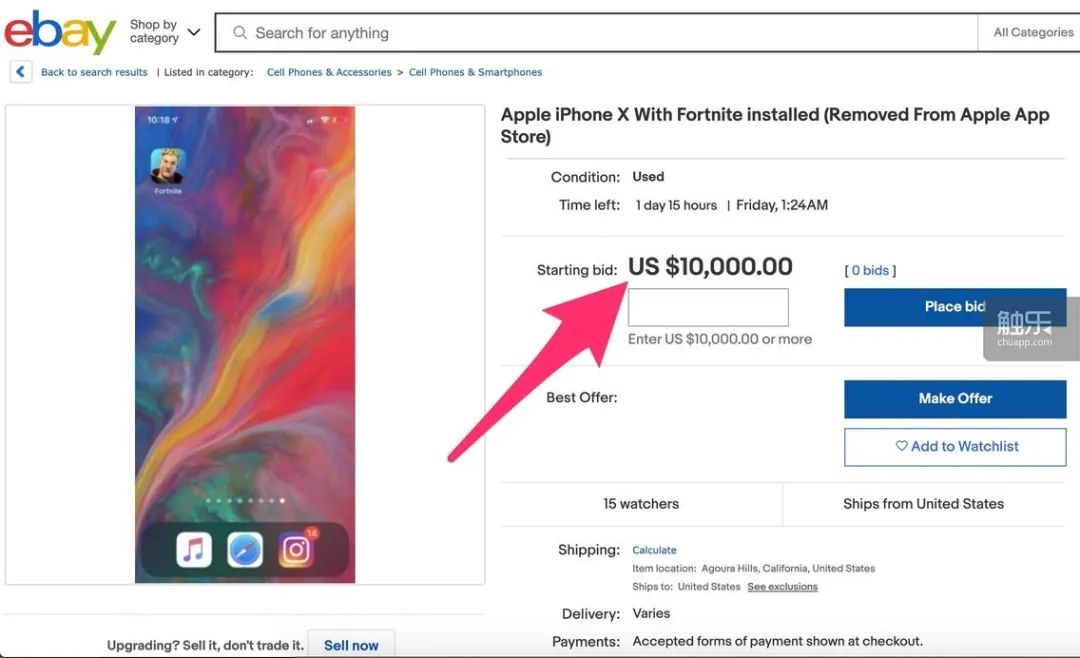 蘋果的這種優勢也導致App Store下架《堡壘之夜》後,不僅遊戲在移動平台上的營收受影響,玩家的日子也不好過。2020年8月時,曾下載過《堡壘之夜》的iOS玩家仍可從App Store的“已購項目”中下載遊戲,因此一部安裝了《堡壘之夜》的iPhone X在eBay上被炒到了1萬美元高價。不過,由於下載版本無法支持遊戲更新,不久後,《堡壘之夜》就徹底退出了蘋果平台。