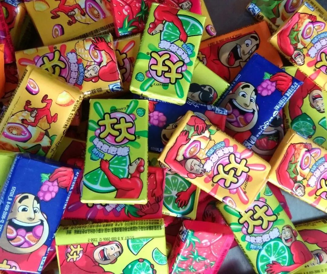 但要説最實惠的還得是99年出現的“大大超人”,小賣部收銀的地方永遠會有個球形的大塑料桶,裏面都是幾毛錢一個單包裝的泡泡糖,連吃帶玩,兩不耽誤。