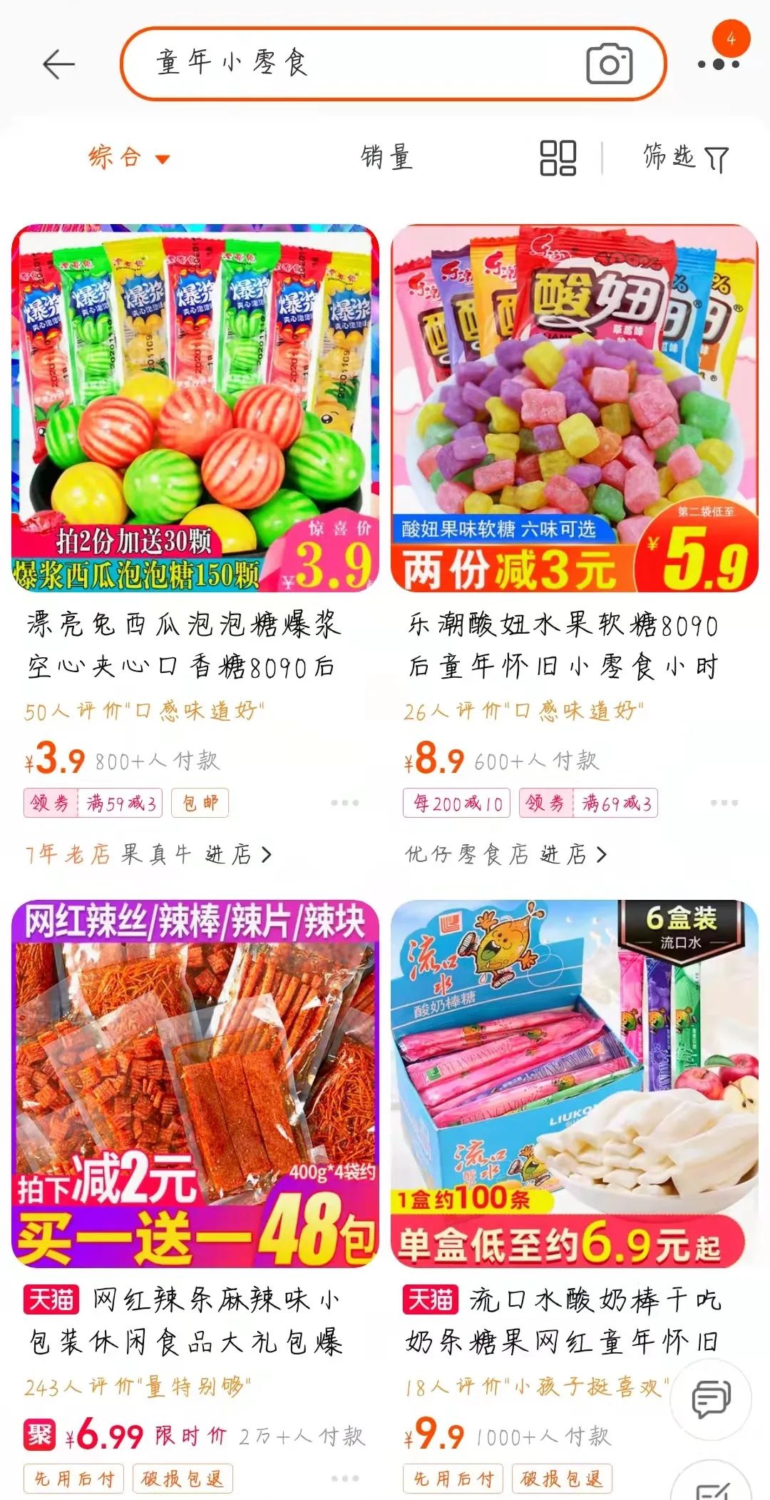 所以你能發現很多童年零食在小賣部和超市裏已經買不到了,反而能從淘寶、京東,甚至抖音上輕易買到。