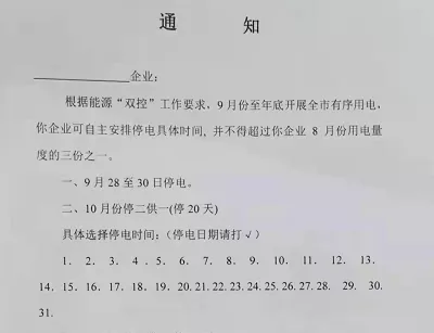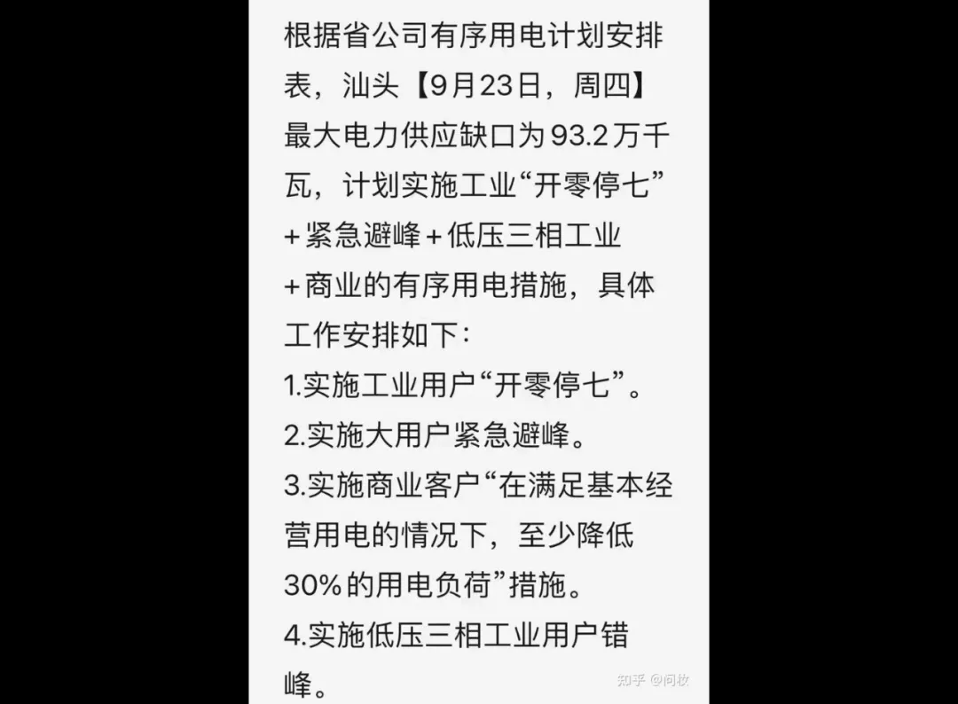 像是廣東不少的工廠,在前不久就收到了關於有序用電的安排,被要求 “ 開零停七 ”。直白點講的話,就是要你直接停電停產。