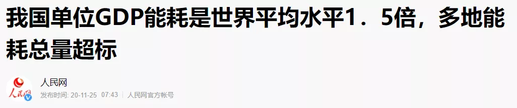 別的先不説,雖然咱們已經是全世界第二大經濟體了,但是我們的單位 GDP 能耗太高了,是世界平均水平的 1.5 倍。平均下來咱們每創造 1 萬塊錢的價值,就要比別人多耗 50% 的電。