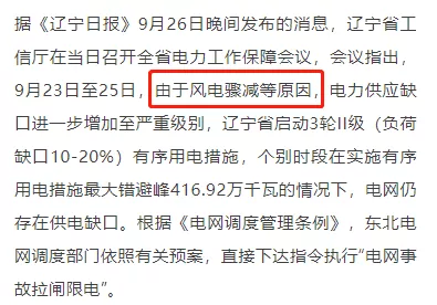 因為風電驟降,當時電力缺口已經到了嚴重級別,在電力面臨崩潰的情況下,才被迫對工廠以外的人拉閘限電,從而影響到了居民。