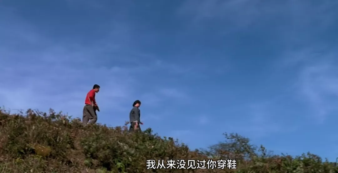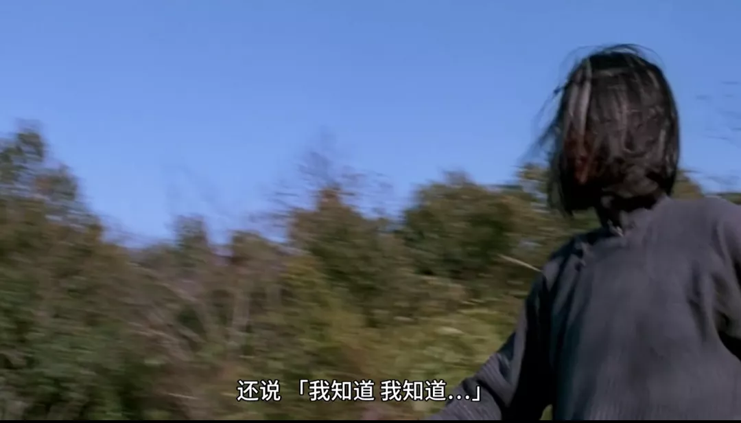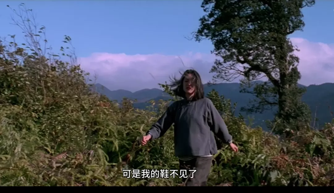 時代變了,兒子當上了小隊長,下山去接來插隊的“李老師”,走到半路,一羣人喊“你媽,你媽”,兒子跑到河邊看,瘋媽的鞋子、衣服,整整齊齊飄在水上,人不見了。