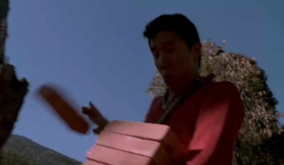 瘋媽繼續做着那些別人以為瘋子才會做的事情,她和村口那株長歪了的樹過不去,爬到樹上,還對兒子講了個《樹上的瘋子》的故事,説樹上有個瘋子,井口有個傻子,傻子盯着井口説:“十三、十三”,瘋子納悶,跳下來問他:“你幹什麼呢傻子?”傻子繼續説“十三、十三”;瘋子看井口,傻子一腳把他踢了進去,然後説:“十四、十四…..”。
