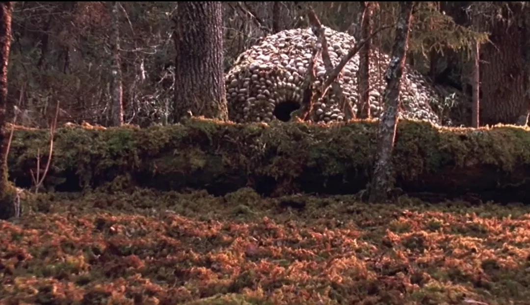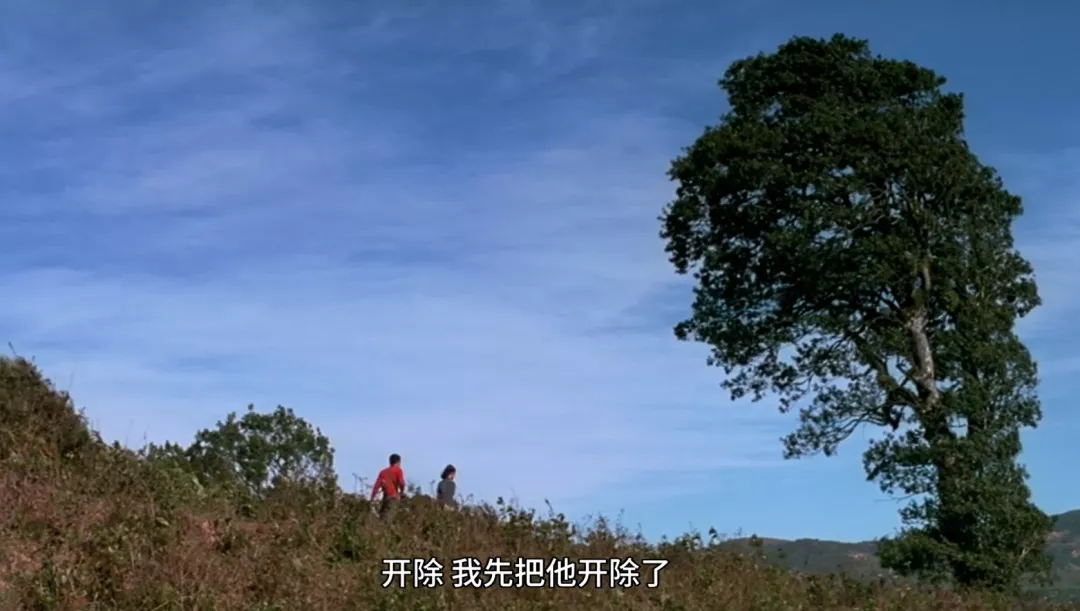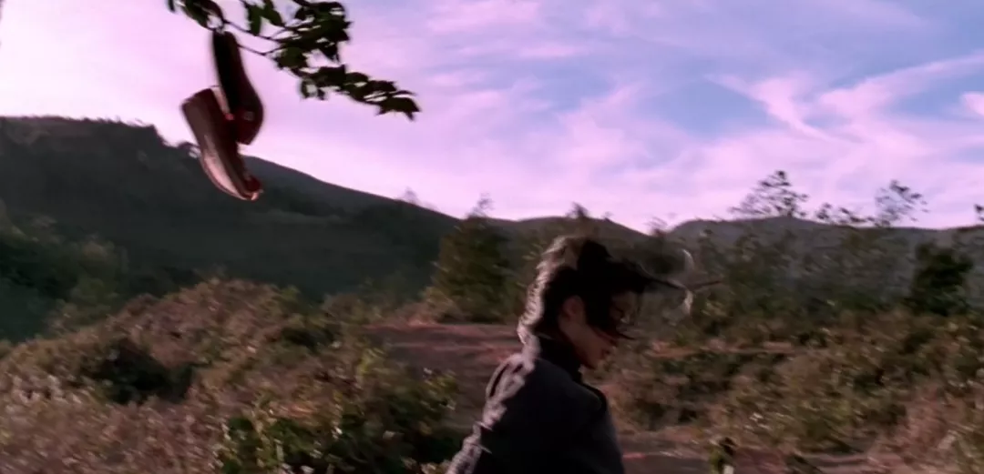 本來陽光明媚,瘋媽手裏有鞋子,身後有兒子,母子間其樂融融,直到他們走到一棵歪脖子樹前,在畫面視角里,這棵樹向左歪,但在瘋媽的視角里,這棵樹向右歪了。