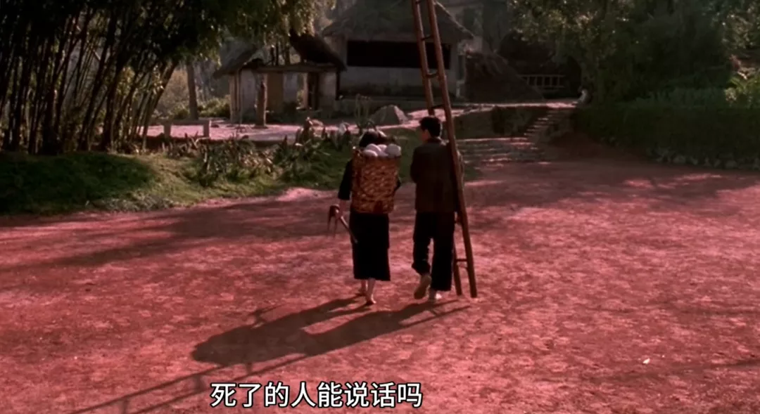 但李叔走後,瘋媽對兒子講的話,就令人毛骨悚然了,她説:“風也大,雨也大,山也塌了,路也斷了,他摔得一身是泥,滿臉是血…….後來他就犧牲了”。光天化日,朗朗乾坤,陽光明媚,李叔活生生站在那裏,瘋媽説他“犧牲了”,是個“死人”,“你見過死人能説話嗎?”