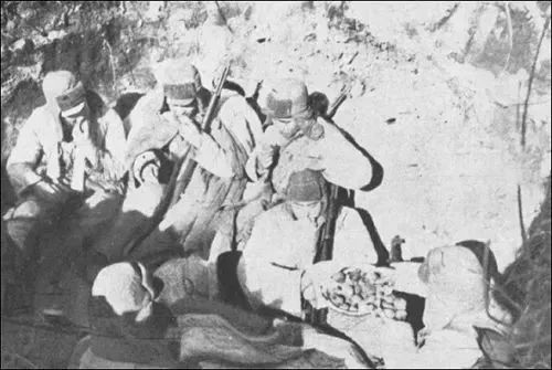 除了禦寒裝備遠差美軍,志願軍的糧食補給也跟享用感恩節大餐的美軍有着天壤之別。作戰期間,因美國空軍的瘋狂轟炸和嚴密封鎖,志願軍運輸和後勤毫無保障。戰士們除了槍械,還得揹着糧食行軍作戰。