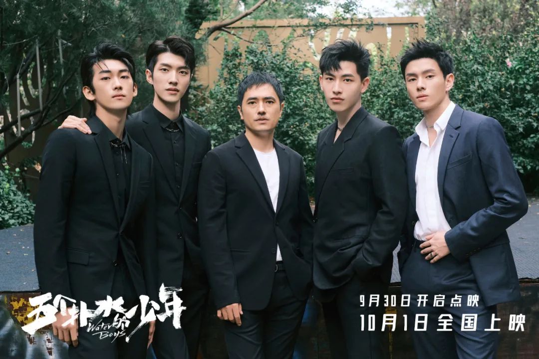 從暑期檔撤檔到國慶的《五個撲水的少年》,改編自2001年的日本同名電影,講述了五個男孩練習花樣游泳的青春故事。“撤檔”、“翻拍”、“花樣游泳”、“新人陣容”這些聽起來在票房市場層面上都不佔優的關鍵詞,讓影片在映前的熱度並沒有完全鋪開。上映後電影的豆瓣評分來到了7.1分,口碑尚佳,仍然難以在檔期內實現逆襲。