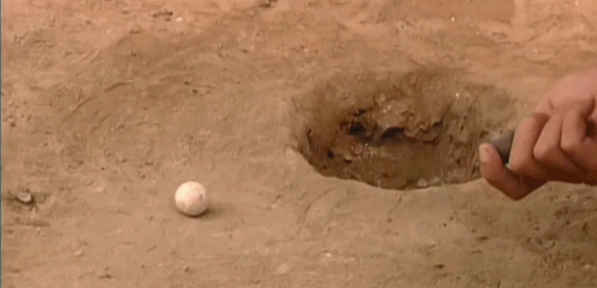 發現有幾個小孩,正在滾小球的遊戲,地上的小洞叫“皇上”,最後一關的大洞,叫“大皇上”,能滾進去就叫“進皇上”。