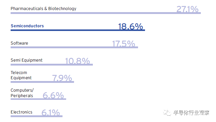美國半導體行業的研發指出佔銷售額的百分比是美國所有行業中最高水平之一就研發支出佔銷售額的百分比而言,美國半導體行業僅次於美國製藥和生物技術行業。雖然全球競爭對手正在增加研發投資,來與美國半導體行業競爭,但美國公司在研發上的支出佔銷售額的百分比高於任何其他國家的半導體行業。這些高水平的研發再投資推動了美國半導體行業的創新,進而有助於保持其全球銷售市場份額的領先地位,並在美國創造就業機會。
