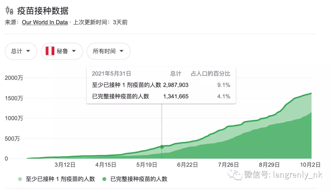 此外,隨着大選塵埃落定,秘魯新總統也終於開始引入中國產疫苗,八月份,剛勝選的總統castillo公開帶頭接種中國疫苗,以提振國民信心;隨後,一千三百萬劑國藥疫苗抵達利馬,總算是把秘魯的疫苗接種率提升到了33%——雖然還是不夠,但比之自己總算進步不少。