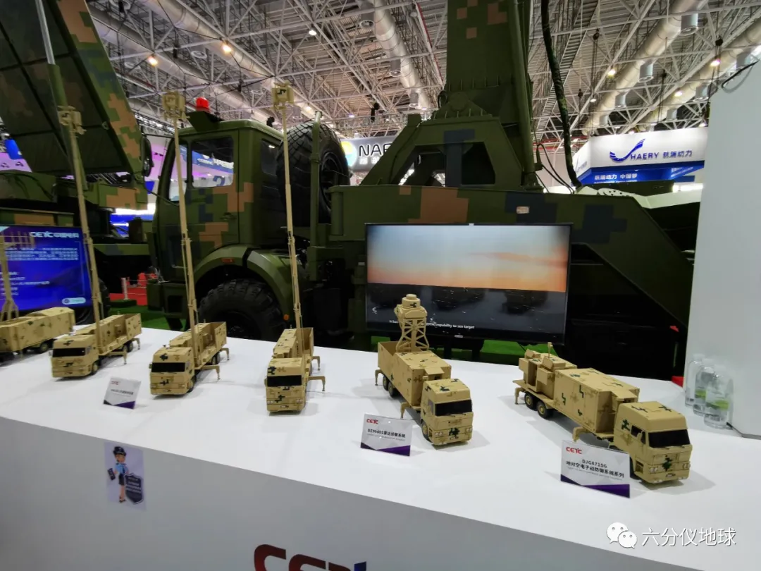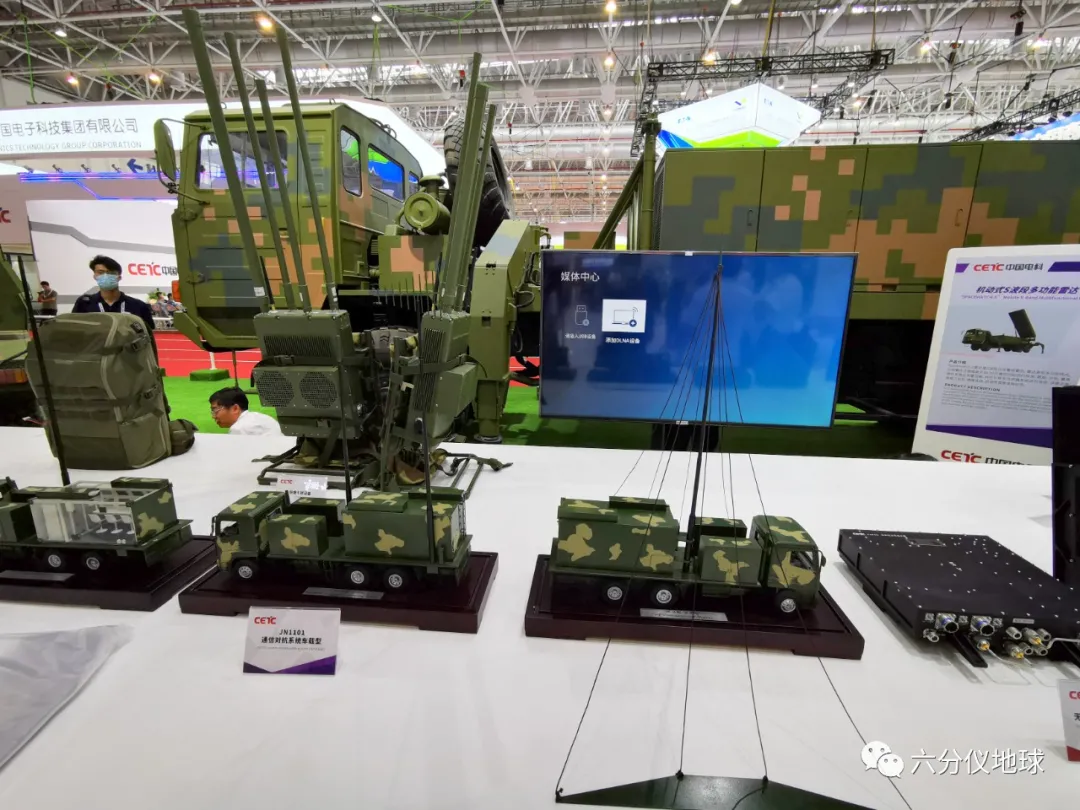 以模型方式展出的各類大型裝備很多,包括:三維無源偵察定位系統、JN1101通信對抗系統車載型、DZ90005雷達偵察系統、地對空電子戰防禦系統系列、JY-50外輻射源雷達、JYL-1A遠程三座標監視雷達、JY-26對空警戒引導雷達、124E被動式防空雷達、KLC-11機載多功能監視雷達、YLC-10 S波段警戒雷達、YLC-18機動型低空三座標雷達,YLC-2A L波段機動三座標警戒雷達、YLC-8E UHF波段三座標警戒雷達、察打一體反無人機系統。