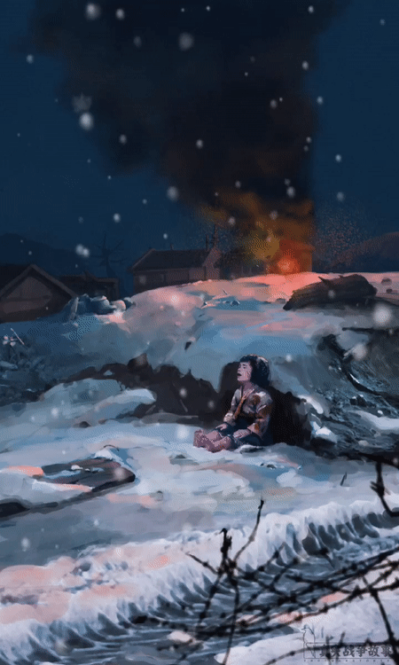 這些慘狀,刺激着每一個志願軍的心,大家低頭前行,不忍直視。軍務在身,軍情緊急,每個人都必須跟着隊伍急行,無法對那些哭泣的孩子伸出援手。