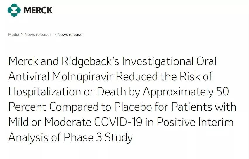 據瞭解,默沙東正在向美國FDA提交緊急授權使用的申請。如果通過,Molnupiravir將是首個新冠口服抗病毒藥物。