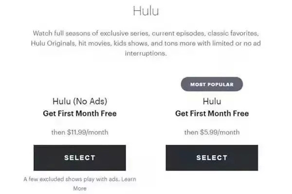 另一派則是以有無廣告來劃分訂閲價格,其中的代表便是Hulu,兩檔會員都能看同樣的內容,而高達6美元(約合40塊人民幣)的差價主要就是體現在沒廣告和能下載兩點上。
