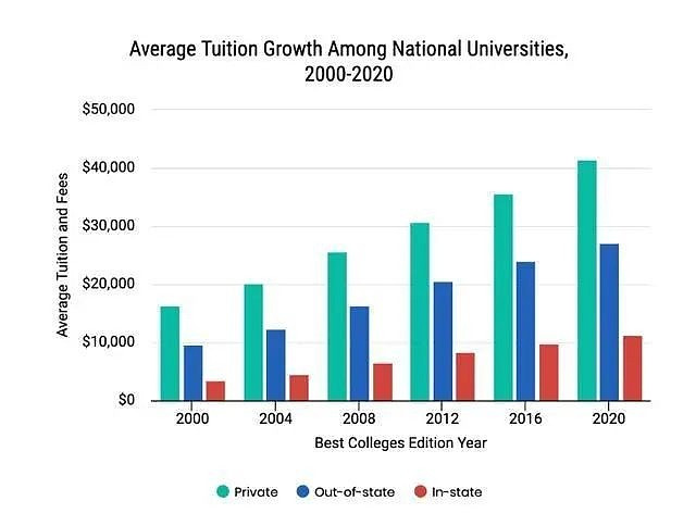 更讓美國大學生絕望的是,學費已經如此昂貴,私立名校的學費還在不斷增長。