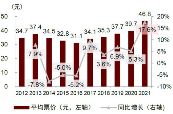 看來,今年票房的火爆全靠高票價撐着。今年國慶檔平均票價,達到了國慶史上之最——46.8元,差點趕上今年最貴的春節檔48.9元。相比2020年的39.7元,今年每張電影票漲了7元之多。而保持着國慶檔44億票房紀錄的2019年,平均票價才37.7元,觀影人次達到了1.18億。