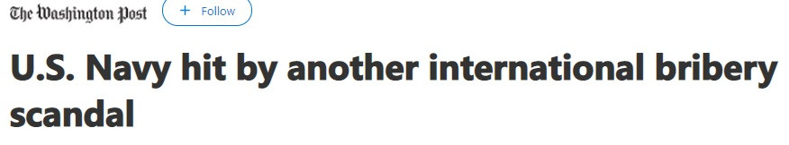 在那起案件中,一名身材魁梧的馬來西亞國防承包商倫納德·格倫·弗朗西斯 (Leonard Glenn Francis) 承認用現金、妓女、奢侈的餐飲和其他好處賄賂了數十名海軍官員,以便他可以向海軍在亞洲的港口服務收取過高的費用。數百名海軍官員受到調查,27 人已在聯邦法院就腐敗相關指控認罪。另外七名被告——所有現任或退休的海軍軍官——計劃於 2 月在聖地亞哥接受審判。