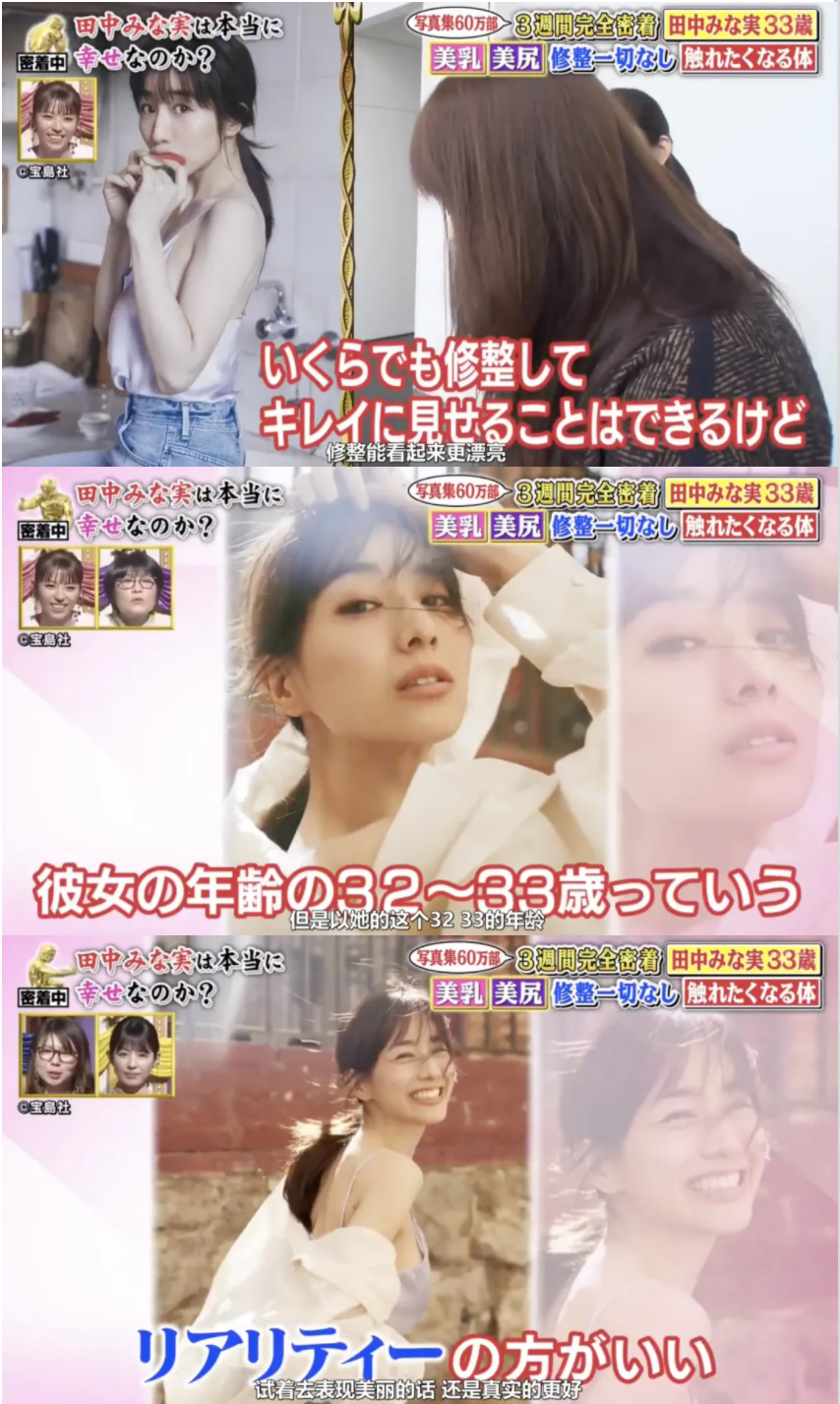其實大家翻閲的時候會發現,照片裏的田中和節目還有以往的雜誌硬照中不同。