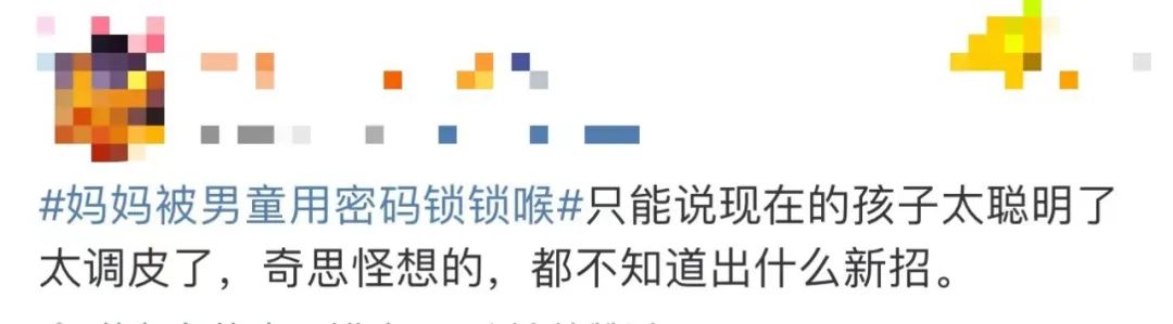 昨天的熱搜裏出現了一條“媽媽被男童鎖喉”的新聞。