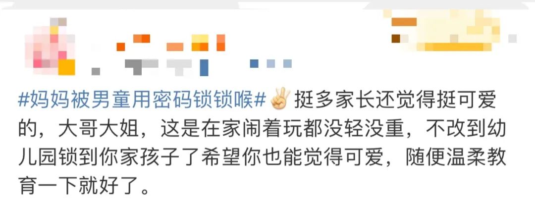 還有人在努力為孩子開脱,説三四歲的孩子都是這樣的,擅長各種卡,言下之意用那玩意去卡媽媽脖子也屬於正常。