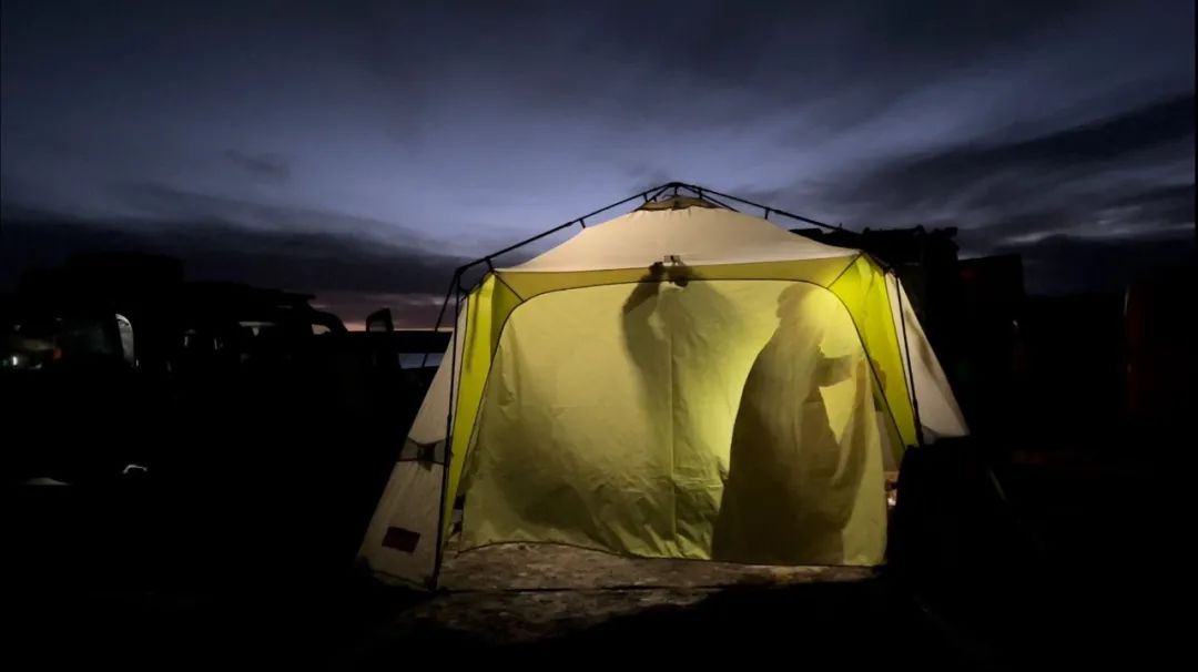 熬到早上,好在天逐漸放晴,出帳篷一看,幾百人在山腰肩並肩地同時等日出,熙熙攘攘和吵吵鬧鬧的環境之下,實在沒什麼“詩和遠方”的意境。尤其天亮後,眼前這一片烏壓壓的帳篷景象,劉燦突然覺得,在家附近的公園裏搭個帳篷不香嗎?原本計劃兩天一晚的露營提前取消,看完日出他就結束了這次並不美好的露營初體驗。