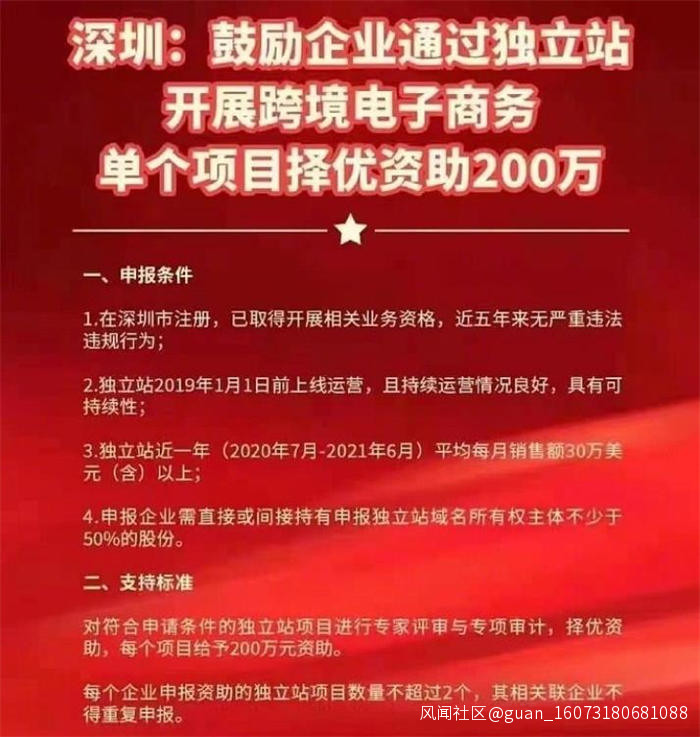 而就在最近兩年蝦皮及Facebook廣告投放+shopify獨立站模式也騰空出世,成為跨境電商賣家們首選平台,而關於跨境電商的話題也成為越來越多人討論的話題了。就在去年,深圳鼓勵跨境電商企業通過獨立站開展跨境電商業務單個項目擇優將補助200萬人民幣,具體條件和標準如下;也正是因為目前做跨境電商當地都會給與一定的扶持和補助,這也導致了越來越多的人加入跨境電商這個領域中。