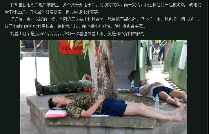 大家都以為吳京只是去作秀的,拍拍照片就走了。但是,他是在災區呆得最久的明星。
