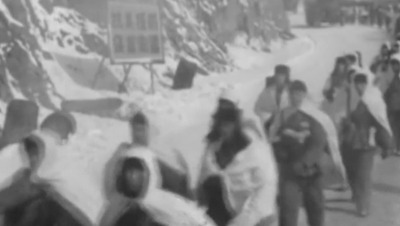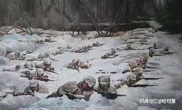 夜間,戰士們只好將這一兩牀棉被攤在雪地上,十多個人擠在棉被上互相摟抱取暖。