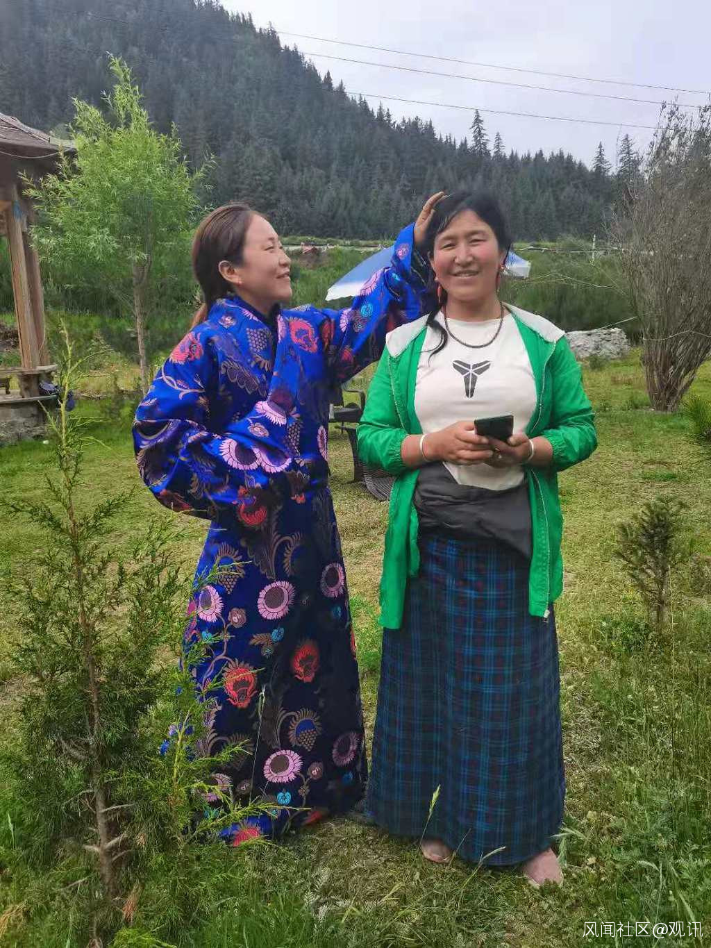 大雨之後,天氣變冷,筆者穿上了藏族朋友“寶鈔”(音譯)給我的服裝,頗感温暖合體,非常舒服。