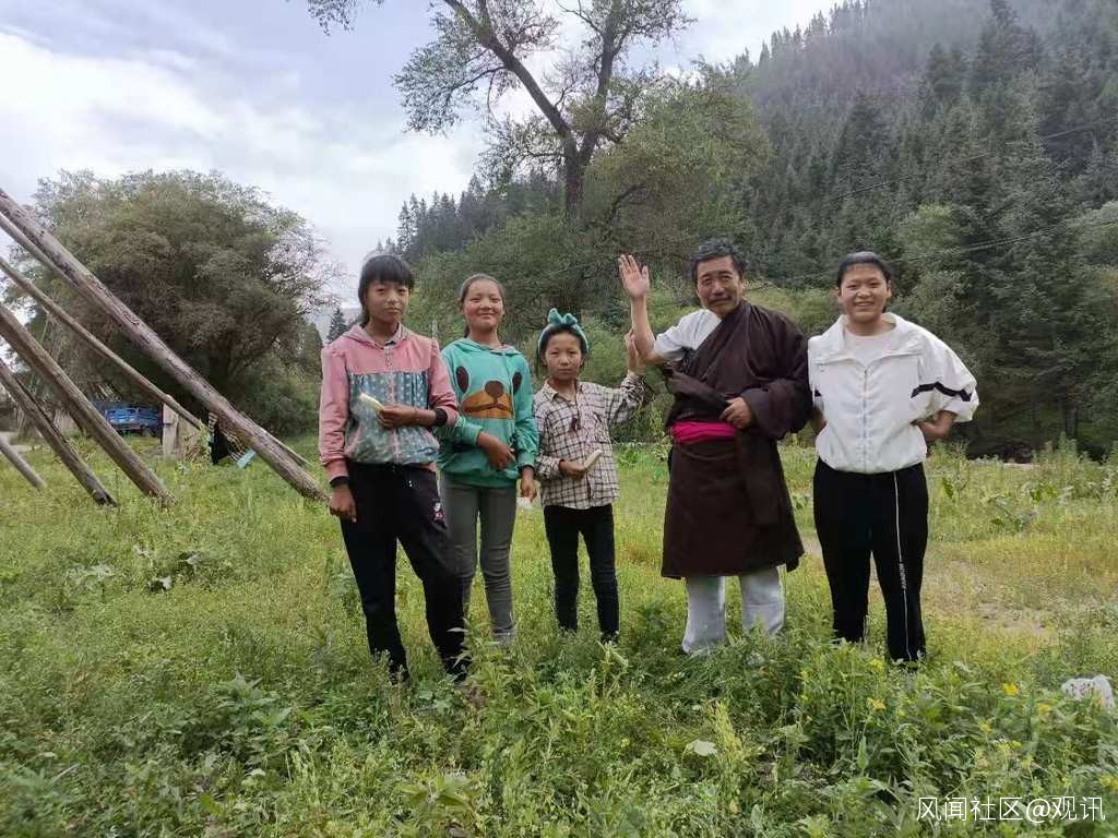 筆者在甘南卓尼縣禱告鄉(或音譯刀告鄉)的龍多村和幾個藏族小朋友合影頗有趣味。