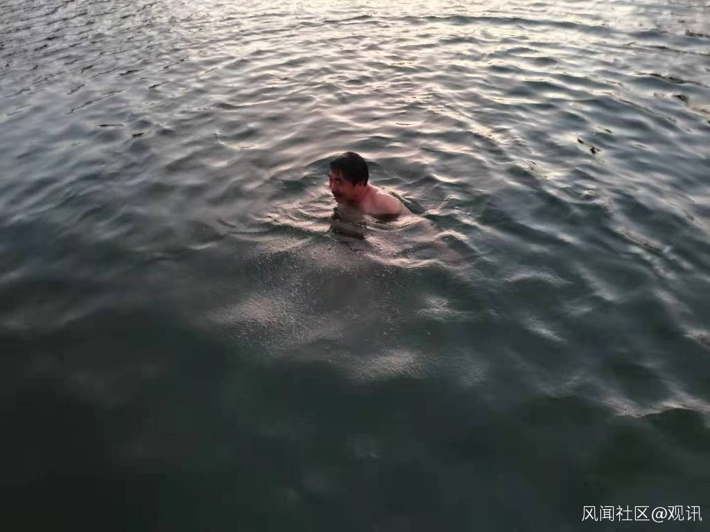 面對清澈的母親河,庫區水深三十多米。自信水性不錯,毫不猶豫地跳了下去!同行的朋友們不敢下河,給我拍照記錄下了當時的情景。