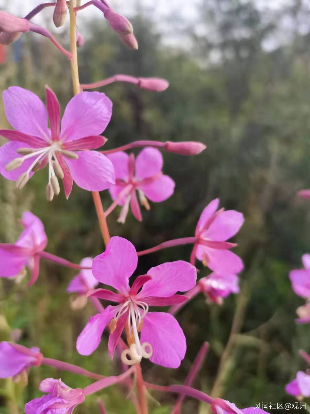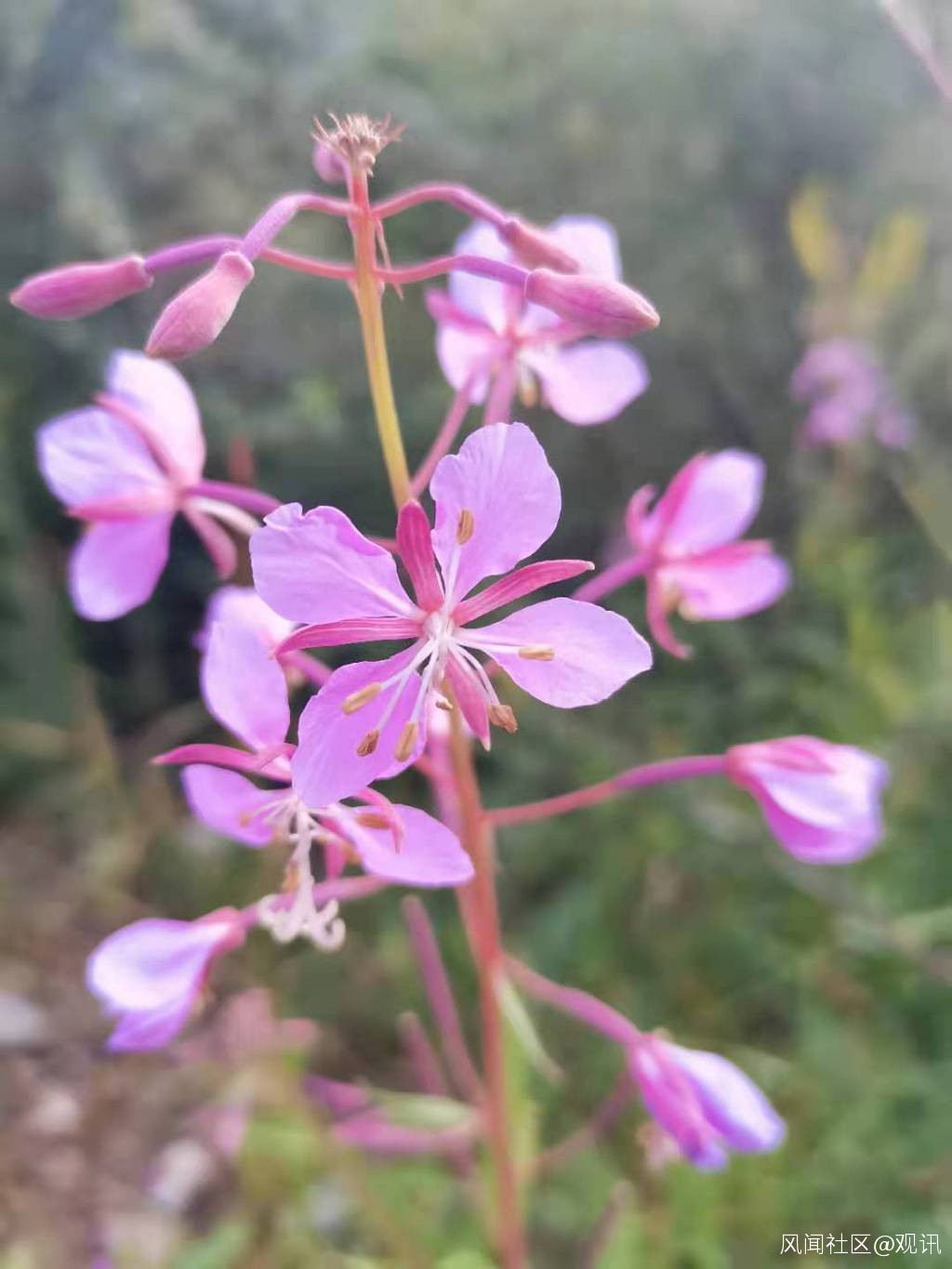 這是柳蘭(柳葉菜科)的花器官發育雌蕊和雄蕊發育不同步的情況。對比下圖可以很鮮明地看到這種情況。注意雄蕊和雌蕊的發育。