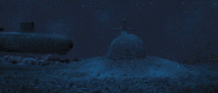 ▲電影《冰海陷落》中美國“弗吉尼亞”級核潛艇,利用漂移轉彎讓追殺魚雷打中海底潛艇殘骸的神場面。