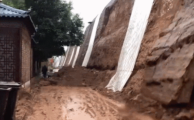 多天的強降雨導致平遙古城內的積水也非常嚴重,其中第84號內牆更是發生了局部坍塌,坍塌長度約25米。