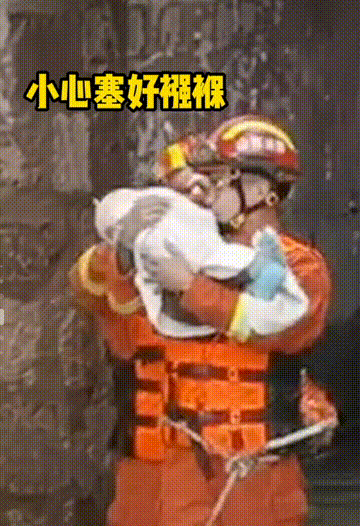 平時勇敢果斷的消防員們在救助了小嬰兒後,變得小心翼翼、輕柔無比,生怕驚嚇到了孩子。