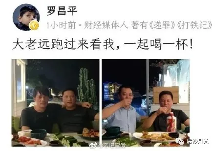 但為了表示自己神通廣大,他又在別一個網絡平台故作鎮定,發了一條在海南三亞與人把酒言歡喝茅台的圖文。