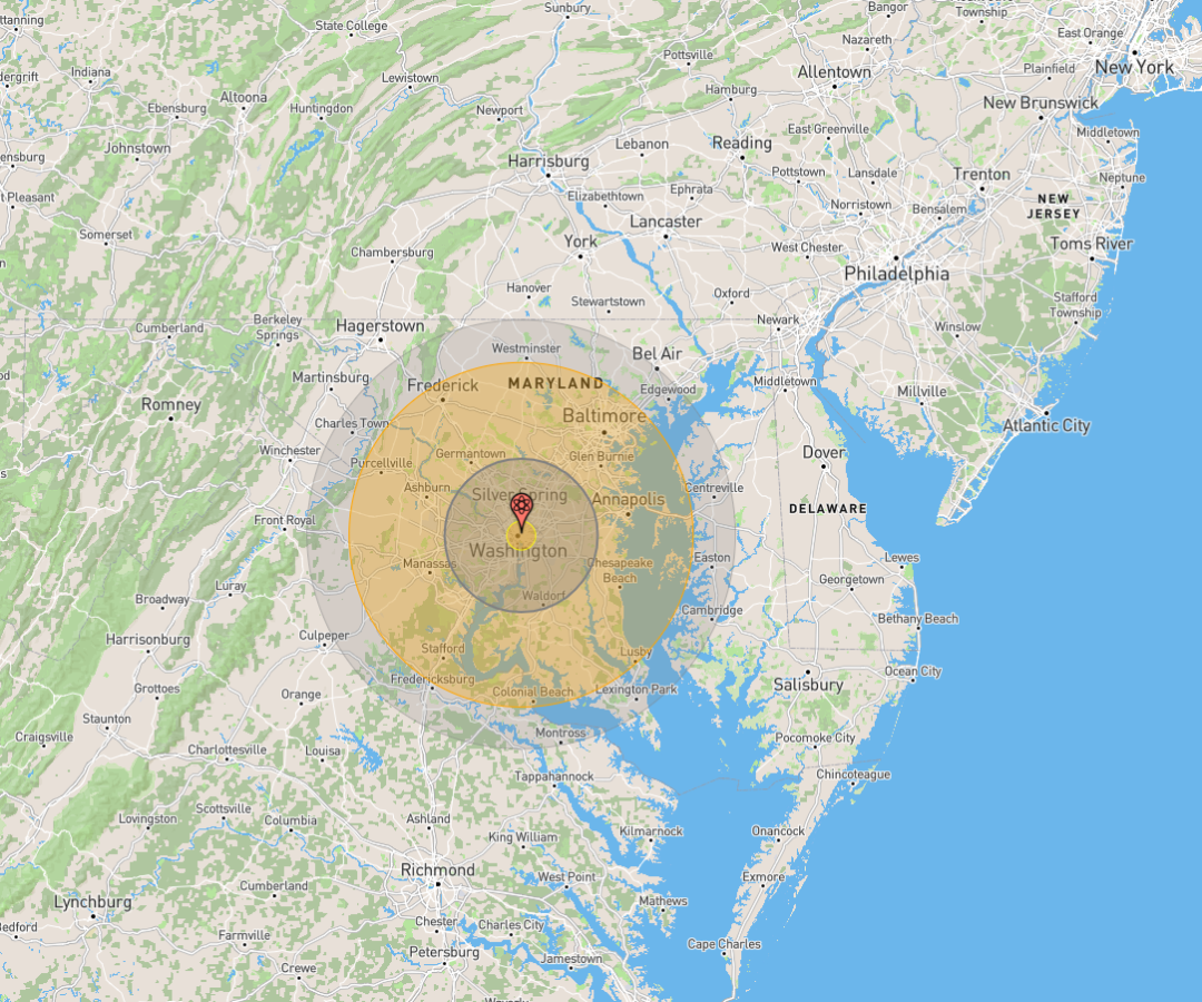 ▲沙皇核彈如果在華盛頓爆炸的威力展示