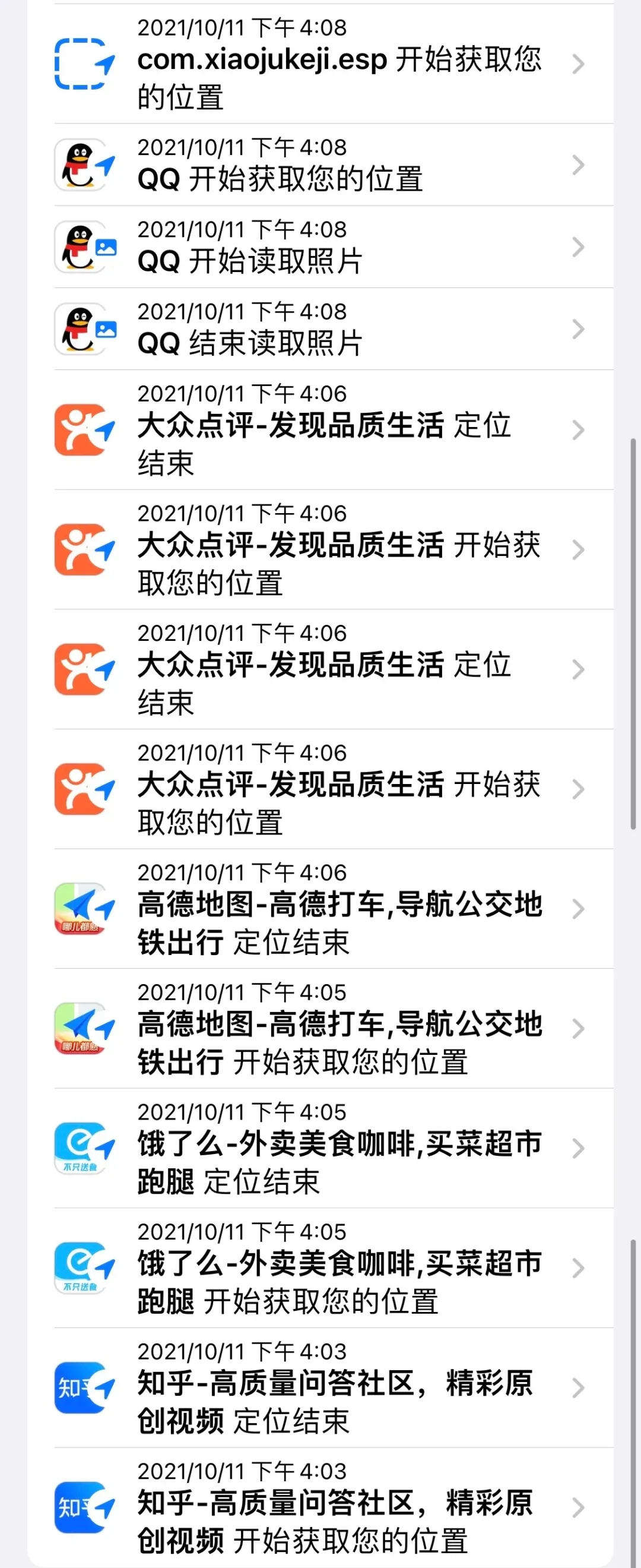 原來,iOS 15開放記錄App活動功能後,通過第三方App導出記錄,用户可以查看到手機中所有App讀取相冊、定位等個人信息的記錄。