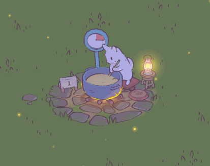 遊戲剛開始,我們會看到一個小貓在森林中熬着湯,遊戲的畫風相當可愛,微微的火光,咕嚕冒泡的湯和偶爾被風浮動的小草,都讓這款遊戲顯得非常精美。