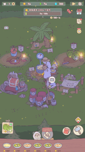 作為一款點擊增量累的放置遊戲,當金幣收穫到一定程度後,便可解鎖一些新的貓咪道具和增產工具,讓產量增加、並且解鎖一些新的貓咪和場景。這些場景基本也有着增產或是提升濃湯價格的作用。