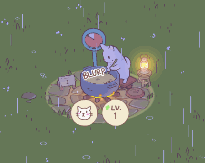 本作還有天氣系統和晝夜交替,晚上有着星星點點的螢火蟲,有時候還會有下雨天的情況,伴隨雨水而來的還有青蛙王子,會給仍在熬湯的貓咪一份意外驚喜。